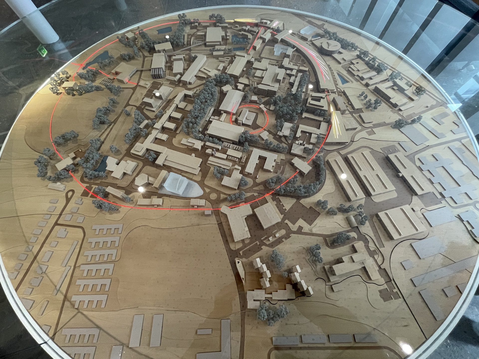 Nach einem kurzweiligen Vortrag, der bekennende Nicht-Techniker bis hin zu Physik-Spezialisten abholte, wurden wir in zwei Gruppen über das sehr weitläufige Gelände geführt. Wir konnten durch den nicht mehr aktiven HERA-Ring gehen, in dem einst die Elektronen und Protonen beschleunigt wurden, wir durften die Schaltzentrale beobachten und einen Blick in die PETRA III-Experimentierhalle ‚Max von Laue‘ werfen. Alle Stationen auf dem mehr als 1 km langen Rundgang wurden durch zusätzliche Schautafeln und Modellkästen hervorragend erklärt. Auch die sehr zahlreichen Fragen der Teilnehmenden wurden kompetent und ausgiebig beantwortet.